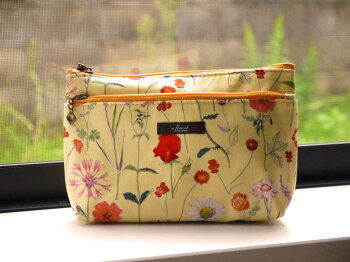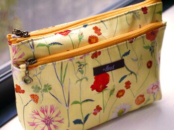 リバティプリントを使用したツーファスナーポーチです。